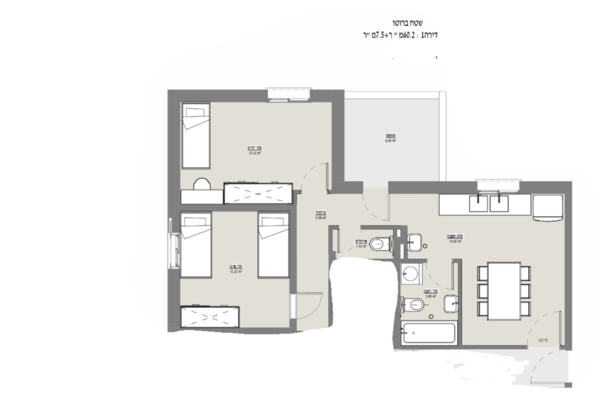 | גודל חצר/מרפסת: |